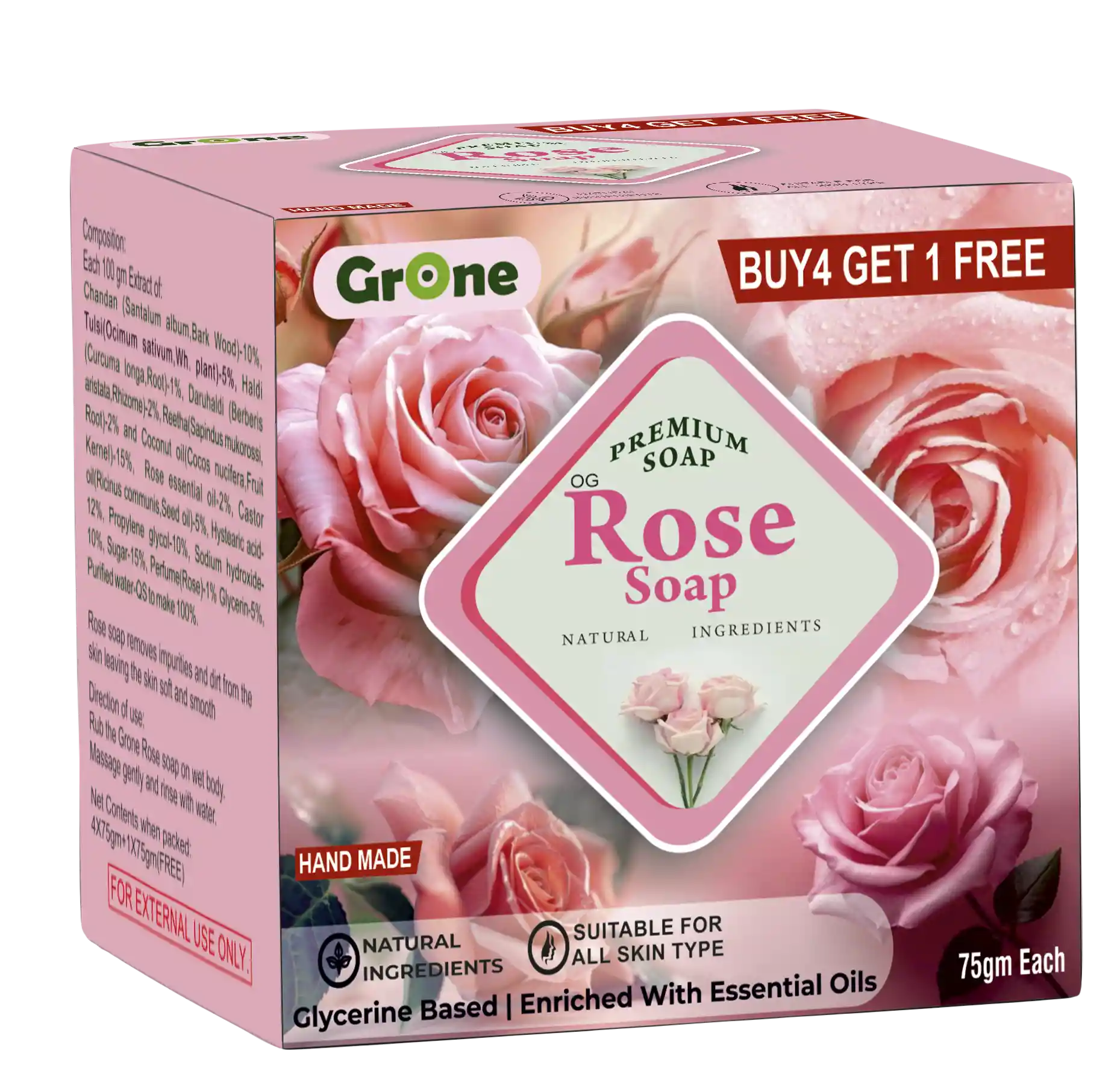 Soap Rose (75g,Pack of 4+1 Pack Free)