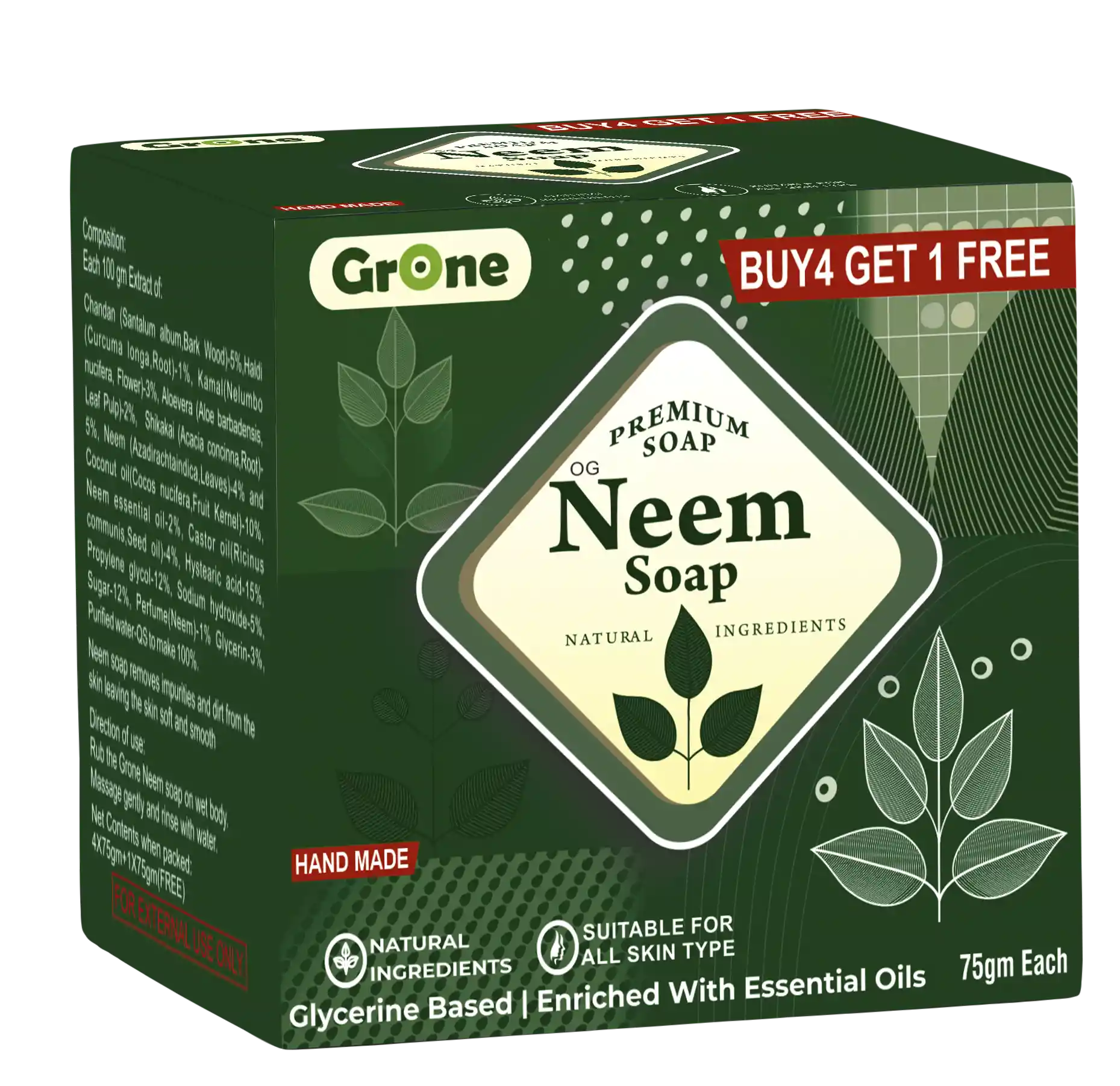 Soap Neem (75g,Pack of 4+1 Pack Free)